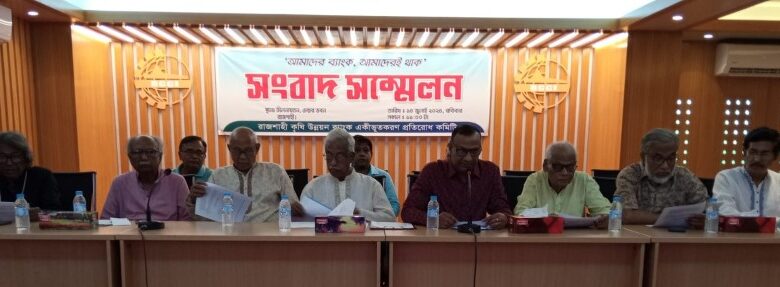 রাজশাহী কৃষি উন্নয়ন ব্যাংক একীভূতকরণের প্রতিবাদে সংবাদ সম্মেলন
