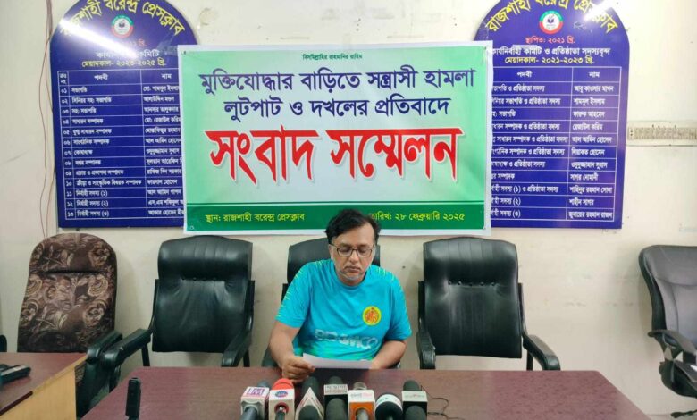 রাজশাহীতে মুক্তিযোদ্ধার বাড়ি দখল,প্রতিবাদে সংবাদ সম্মেলন